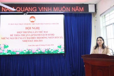 Chiều ngày 02/02, Ủy ban Mặt trận Tổ quốc Việt Nam xã Cam Lâm tổ chức hội nghị hiệp thương lần thứ hai để thỏa thuận lập danh sách sơ bộ những người ứng cử đại biểu Hội đồng nhân dân xã, nhiệm kỳ 2026-2031.