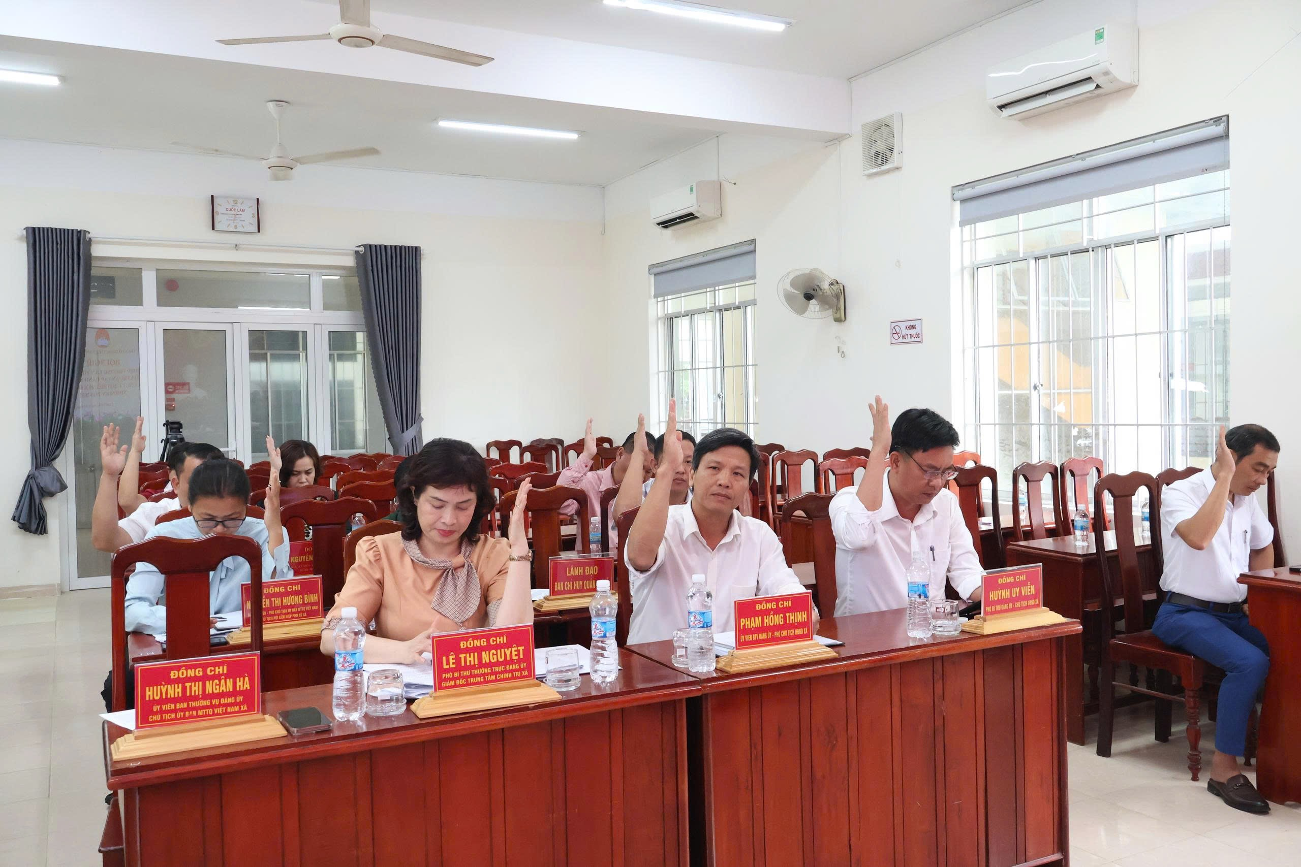 Theo đó, khối Đảng có 07 người; chính quyền có 16 người; khối Mặt trận, đoàn thể có 06 người; khối lực lượng vũ trang có 05 người; khối đơn vị sự nghiệp ngành dọc đóng chân trên địa bàn xã có 06 người; tổ chức kinh tế có 03 người; đại biểu chức sắc, tôn giáo có 02 đại diện tôn giáo (Phật giáo, Công giáo); các thôn có 08 người. Về cơ cấu kết hợp: nữ 20 người, tỷ lệ 37,04%; ngoài đảng 06 người, tỷ lệ 11%; trẻ (dưới 40 tuổi) 10 người, tỷ lệ 18,52%; tái cử 17 người, tỷ lệ 31,48%.