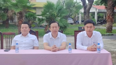 Đảng ủy, UBND xã tặng hoa cho Công an xã Cam Lâm