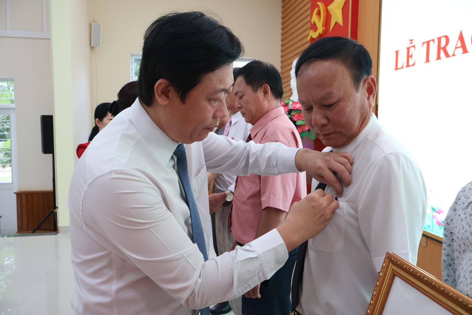 Lãnh đạo xã trao huy hiệu đảng cho các Đảng viên