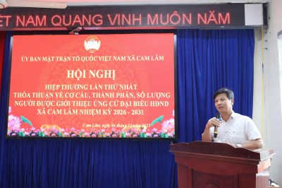 Sáng ngày 04/12, Ban Thường trực Ủy ban MTTQ Việt Nam xã Cam Lâm tổ chức Hội nghị hiệp thương lần thứ nhất để thảo luận dự kiến cơ cấu, thành phần và số lượng người được giới thiệu ứng cử đại biểu HĐND xã Cam Lâm, nhiệm kỳ 2026 - 2031. Tham dự có đồng chí Lê Thị Nguyệt, Phó Bí thư Thường trực Đảng ủy; đồng chí Phạm Hồng Thịnh, Ủy viên Ban Thường vụ, Phó chủ tịch HĐND xã; đồng chí Nguyễn Xuân Phúc, Ủy viên Ban Thường vụ, Phó chủ tịch UBND xã; đồng chí Huỳnh Thị Ngân Hà, Ủy viên Ban Thường vụ, Chủ tịch Ủy ban Mặt trận Tổ quốc Việt Nam xã.