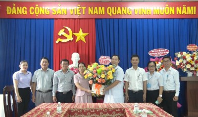 Lãnh đạo xã Diên Khánh tặng hoa chúc mừng Bệnh viện Bệnh Nhiệt đới Khánh Hòa