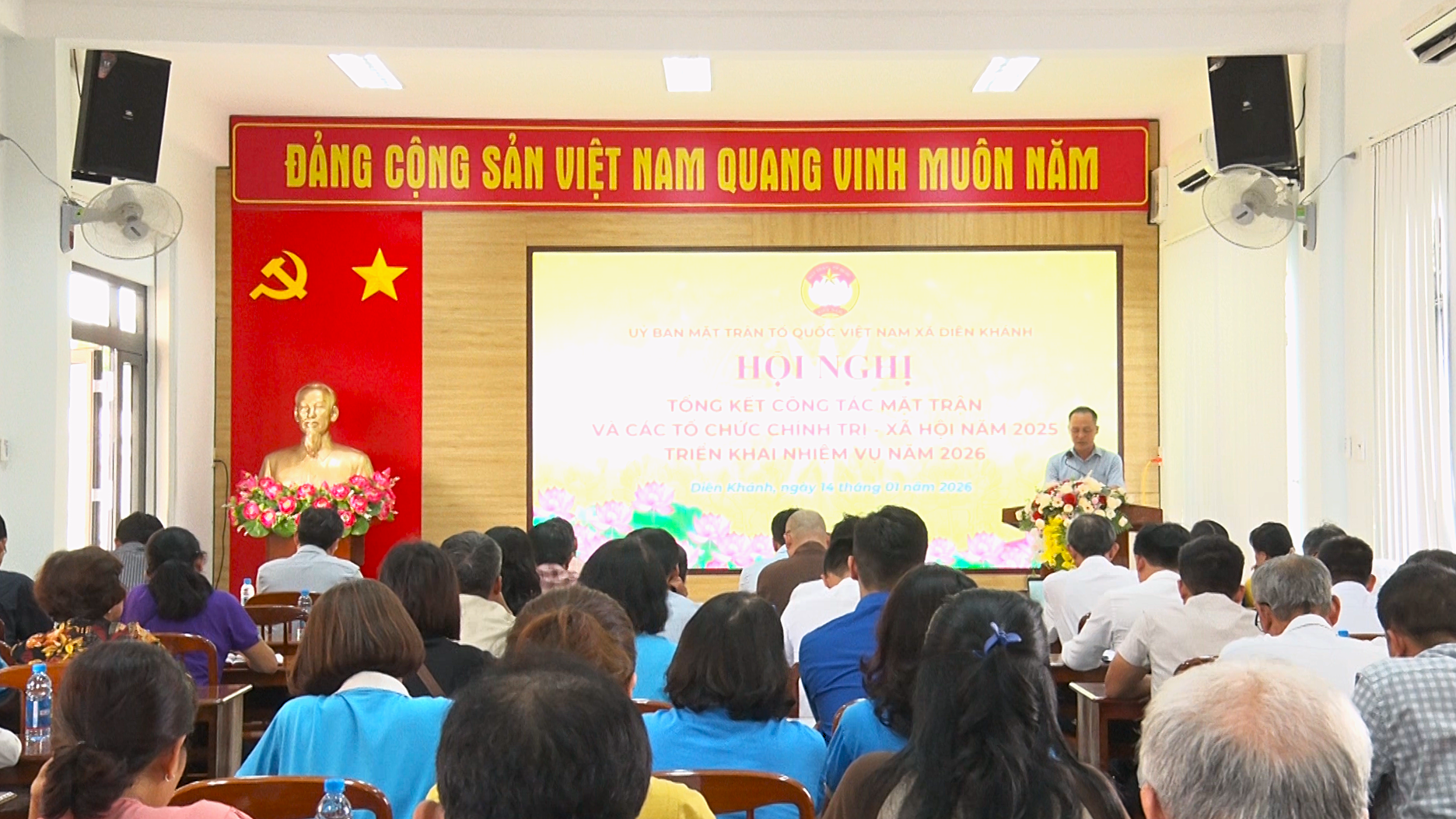Chiều 14/1, Ủy ban Mặt trận Tổ quốc Việt Nam xã Diên Khánh tổng kết công tác Mặt trận và các tổ chức chính trị xã hội năm 2025; triển khai nhiệm vụ trọng tâm năm 2026. Tham dự có các đồng chí lãnh đạo Đảng ủy, HĐND, UBND, Ủy viên Ủy ban Mặt trận Tổ quốc Việt Nam, các tổ chức chính trị xã hội xã Diên Khánh và các chi hội trưởng cùng các tập thể, cá nhân được khen thưởng tại hội nghị.