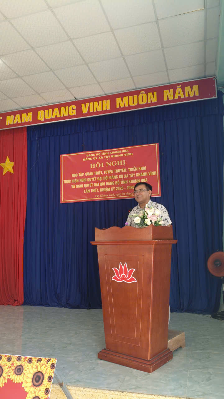 Tại Hội nghị, các đại biểu được nghe đồng chí Bí thư Đảng ủy phổ biến, quán triệt các nội dung: Nghị quyết Đại hội đại biểu Đảng bộ tỉnh Khánh Hòa lần thứ I, nhiệm kỳ 2025-2030; Nghị quyết Đại hội đại biểu Đảng bộ xã Tây Khánh Vĩnh lần thứ I, nhiệm kỳ 2025-2030