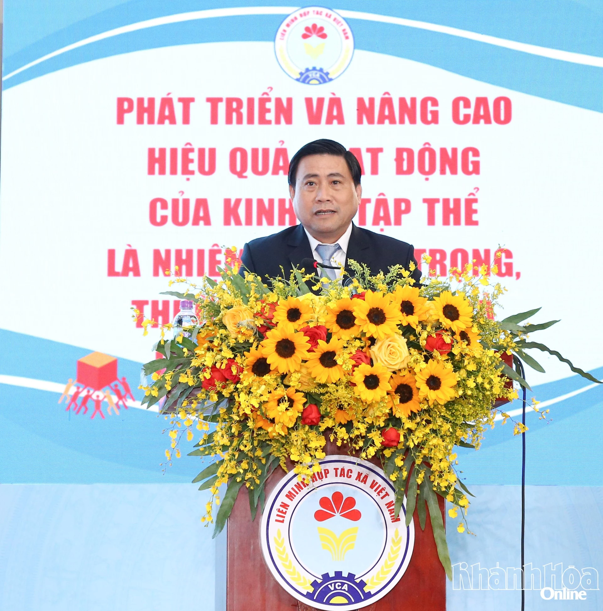 Phát biểu tại đại hội, Chủ tịch Liên minh HTX Việt Nam Cao Xuân Thu Vân đánh giá cao những thành tích mà Liên minh HTX tỉnh và các HTX trên địa bàn tỉnh đạt được trong nhiệm kỳ qua. Khánh Hòa đang đứng trước vận hội lịch sử để phát triển bứt phá, chuyển mình phát triển năng động, hiện đại, bền vững là điểm đến lý tưởng cho các nhà đầu tư. Để kinh tế tập thể, HTX đóng góp vào phát triển kinh tế - xã hội tỉnh, Chủ tịch Liên minh HTX Việt nam đề nghị Liên minh HTX tỉnh tập trung thực hiện 3 vấn đề cốt lõi: Xây dựng Liên minh HTX tỉnh vững mạnh; đẩy mạnh ứng dụng khoa học, công nghệ, chuyển đổi số, phát triển mô hình kinh tế tập thể điển hình tiêu biểu; thắt chặt liên kết phát triển sản xuất theo chuỗi giá trị.