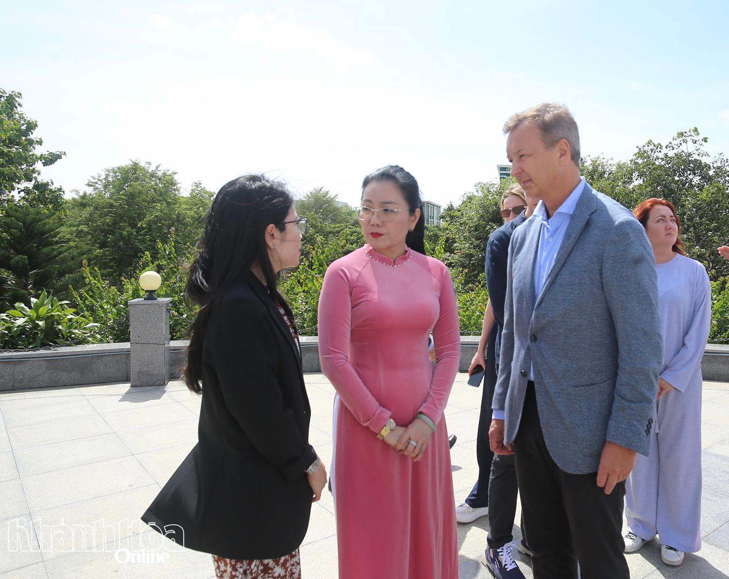 | Phó Chủ tịch HĐND tỉnh Phạm Thị Xuân Trang cảm ơn ông Andrey Vladimirovich Yatskin và đoàn công tác Liên bang Nga đã đến thăm, làm việc tại tỉnh Khánh Hòa. |