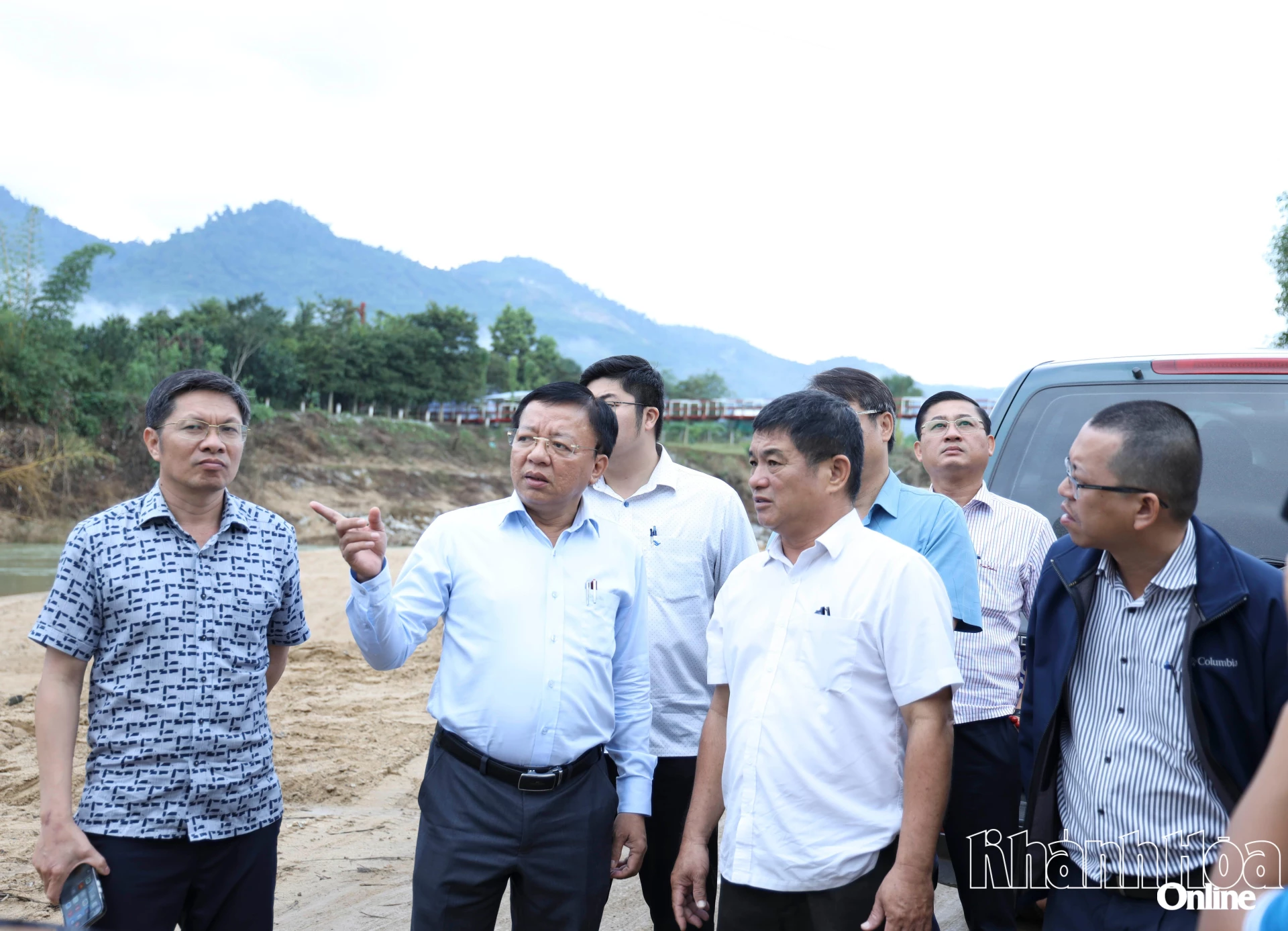 | Đồng chí Lê Huyền kiểm tra tình hình triển khai Dự án Đường liên vùng Khánh Sơn - Khánh Vĩnh. |