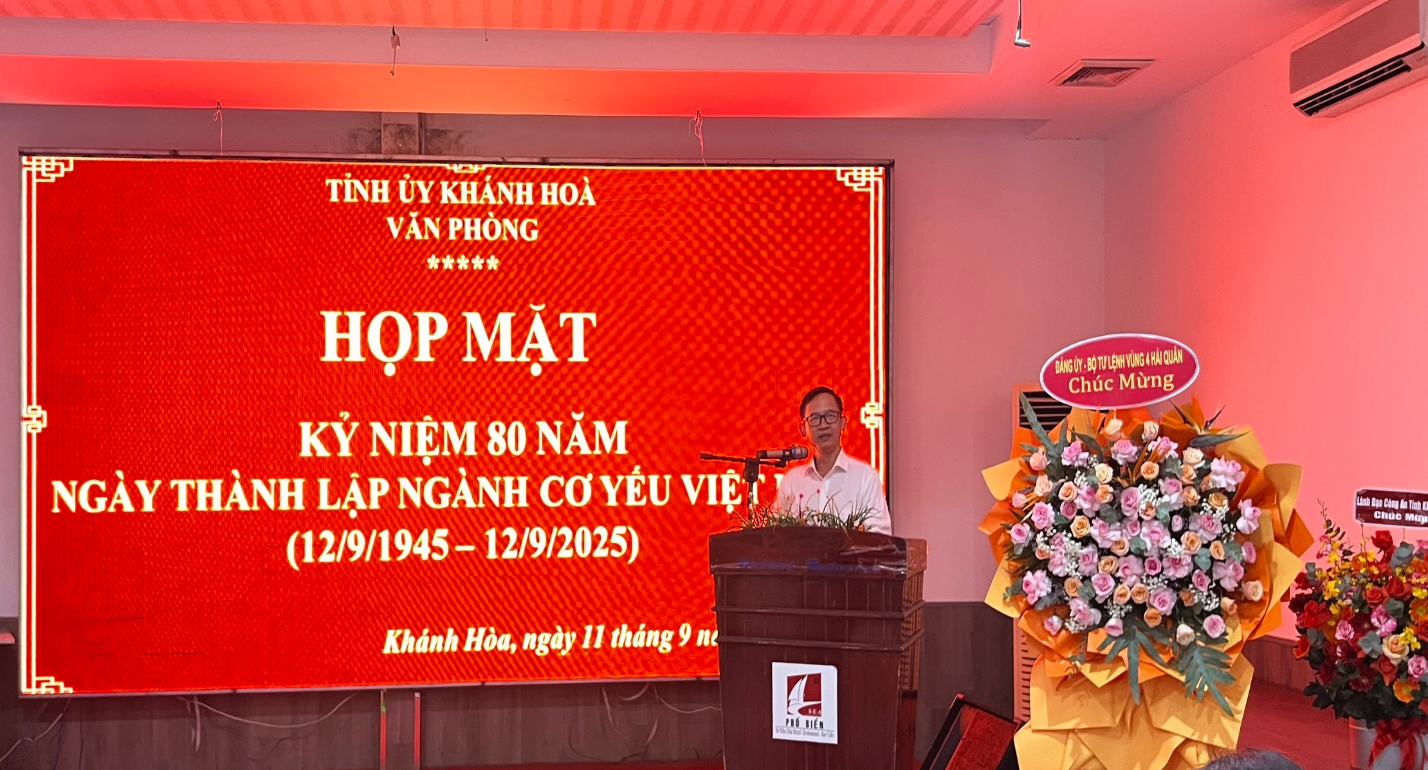 Chiều ngày 11/9/2025, Văn phòng Tỉnh ủy Khánh Hòa tổ chức Họp mặt Kỷ niệm 80 năm ngày thành lập Ngành Cơ yếu Việt Nam (12/9/1945-12/9/2025). Đây là dịp để Cơ yếu các đơn vị đóng trên địa bàn tỉnh ôn lại chặng đường lịch sử vẻ vang, về những đóng góp thầm lặng nhưng vô cùng to lớn của các thế hệ cán bộ, nhân viên cơ yếu trong sự nghiệp bảo vệ an ninh quốc gia.